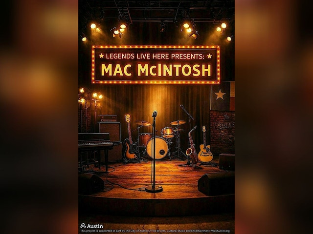 LEGENDS LIVE HERE PRESENTS MAC MCINTOSH! Legends Live Here is a community-driven docuseries that honors Austin’s unsung musical icons. Artists whose influence shaped the city’s sound, yet whose stories are too rarely celebrated. Created and executive produced by Austin-based artist Jess Ross, the series brings together intimate conversations and a powerful live studio performance filmed before a studio audience at Austin’s historic Austin Public Studios. This episode features local vocalist and community icon, the incomparable Mac McIntosh! Supported by an extraordinary musical ensemble of legends in their own right and guided by musical producer Jon Deas, this is not just a recording, but a moment in Austin music history. Each Legends Live Here episode serves as both a cultural tribute and a living archive—bridging generations, honoring legacy, and uplifting the roots of Austin’s music scene for locals and visitors alike. This project is supported in part by the City of Austin Office of Arts, Culture, Music and Entertainment. VisitAustin.org. Dress code: Dress like you’re going to be up close and personal with an Austin music legend—because you are! PLEASE NOTE: This is a live studio music recording filmed in an active production environment. Audience capacity for this performance is very limited. Audience members will be seated close to the band and may appear incidentally on camera and on film. Professional lighting, sound equipment, cameras, cables, and other technical elements will be present, and sound levels may be loud. Ear protection is recommended and will be available on site. This live music performance will be recorded, and by attending, you consent to the use of your image and likeness in connection with this recording and waive any right to inspect or approve the finished content. This is a scheduled live taping. Please plan to arrive on time, as late entry may not be permitted once recording has begun due to the nature of the production. By reserving a ticket, you acknowledge the nature of a live recording set, understand the potential hazards, and agree to follow all instructions from studio and production staff at all times. Times and regulations may change at any time, and we will notify you directly as soon as possible of any updates that may impact the audience experience. Your cooperation helps ensure a safe, smooth, and enjoyable experience for everyone.
