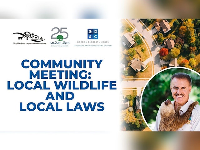 Learn how local wildlife and our pets can thrive together as Ron Magill shares insights on responsible coexistence and conservation in Miami Lakes. Discover how small community efforts contribute to protecting South Florida’s natural habitats. This event is sponsored by Goede, DeBoest & Cross, who will also share the 2025 Community Association Law Legislative Update with residents. Light bites will be provided.