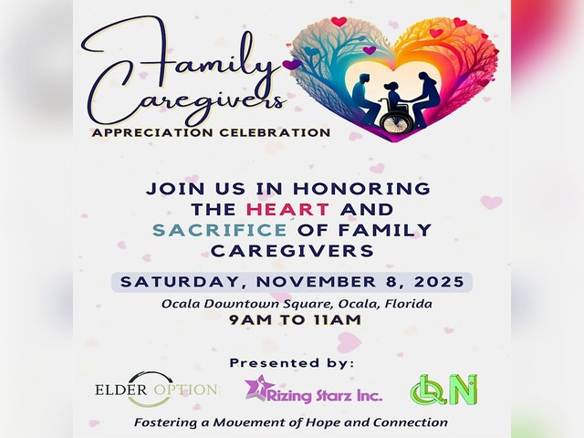 In celebration of National Family Caregivers Appreciation Month in November, join us in Ocala, Marion County, Florida, for a heartfelt caregiver event honoring those exceptional family caregivers who tirelessly support their loved ones. This special gathering, designed to celebrate your dedication, offers a moment to recharge and connect you with a supportive community. Expect a warm, welcoming atmosphere filled with relaxation, resources, and recognition for your invaluable role. · Inspiration and Recognition: Be celebrated for your compassion and resilience with heartfelt acknowledgments. · Relaxation and Self-Care: Discover ways to recharge physically and emotionally during this special month dedicated to caregivers. · Free 5-Minute Massage for Early Registrants: The first 20 family caregivers to register will enjoy a complimentary 5-minute massage to ease stress (one massage per household). · Community and Connection: Meet fellow caregivers in Marion County, share experiences, and build lasting connections in a supportive environment that celebrates your shared journey. · Practical Resources and Support: Explore tools, tips, and local resources tailored to caregivers, including respite centers and home care. · Fun and Engagement: Enjoy uplifting entertainment, refreshments, and door prizes to make this Family Caregivers' month memorable and joyful. This event is a way to express our value, support, and desire to empower you through the resources available in our local Ocala/Marion County family caregiving community during National Family Caregivers Month. Don’t miss out—register early to join the celebration!