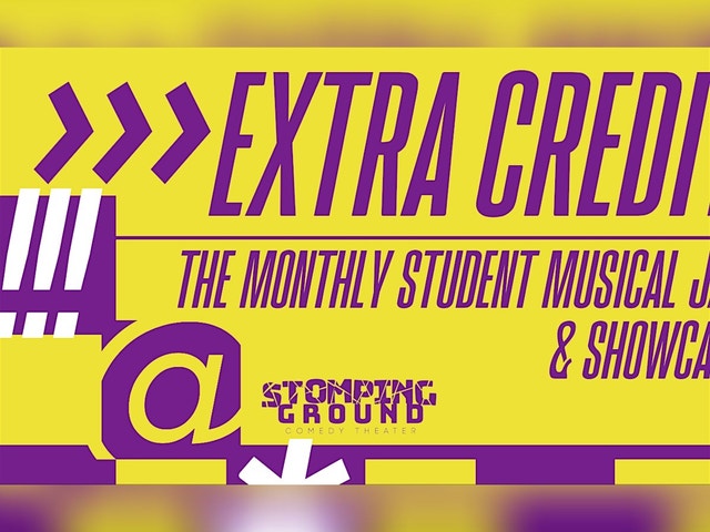 Class is in session and the night is all about playing off-book! Extra Credit is a free community event designed specifically for improvisers to bridge the gap between the classroom and the stage. Join us for a FREE musical improv jam, student musical indie team sets, and a student lottery where you can have the chance to jump onstage and make up tunes with seasoned musical improv veterans. Whether you’re an experienced performer or brand‑new to musical improv, this community event is a supportive, low‑pressure way to play and perform. We’ve packed the evening with three "lessons" in comedy: * The Musical Improv Jam: Kick things off by getting on stage! This is a low-pressure, high-fun opportunity for students of all levels to hop into scenes and sing. * The Indie Showcase: We’ll feature sets from two local independent musical improv groups. * The Student Spotlight Set: This is the headlining set! A team of seasoned musical improv veterans will take the stage, but they aren't playing alone. We’re pulling names from a hat, and willing students will be chosen to join the veterans on stage to play. It’s your chance to share the spotlight with the pros! Registration is optional and just helps us plan—you’re always welcome to drop in and play! And the show portion (beginning at 8:45) is free and doesn't require a ticket. The Extra Credit Monthly Student Musical Improv Jam & Showcase happens every fourth Thursday from 7-9:45 PM and is BYOB. Must be 18 or older. All participants are expected to follow the Stomping Ground Student Handbook; find our current policies and FAQs here [https://stompinggroundcomedy.org/frequently-asked-questions/].