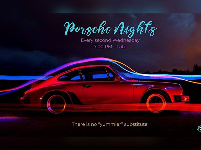 Porsche Nights WELCOME TO PORSCHE NIGHTS! Come join us at Baoshi Food Hall + Bar for a night filled with luxury cars, good company, and great food! Whether you're a Porsche enthusiast or just appreciate beautiful cars, this event is for you. Get ready to admire sleek designs, powerful engines, and the unmistakable roar of a Porsche. Chat with fellow car lovers, indulge in delicious bites, and enjoy a night dedicated to all things Porsche. Don't miss out on this opportunity to experience the thrill of Porsche up close and personal. Mark your calendars for Porsche Nights at Baoshi Food Hall + Bar!