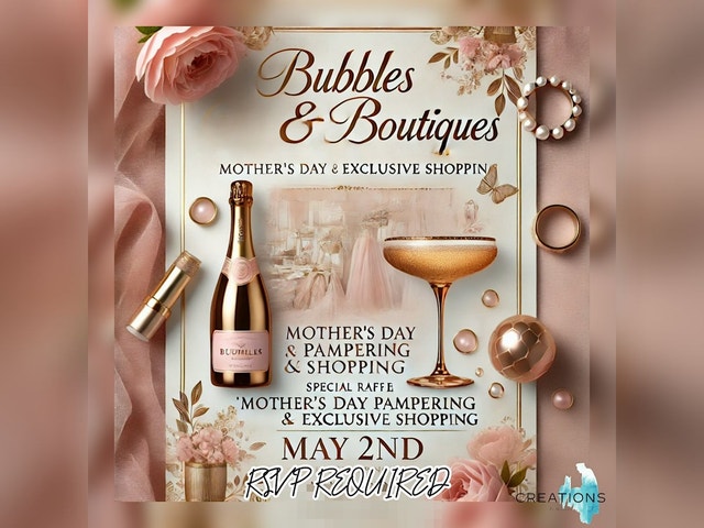 Live boutique shopping for Mother’s Day & Teacher Appreciation Week, Bubbles, pampering & luxe vibes! Exciting raffles to be revealed soon!