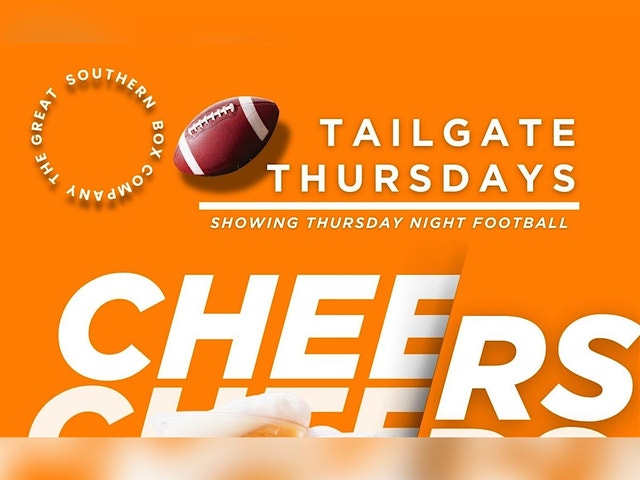 JOIN US FOR TAILGATE THURSDAYS! Come hang with us every week at the Great Southern Box. Bring your friends, family, and your best tailgating gear to enjoy some good food, games, and great company. Let's make this Thursday one to remember! Don't miss out on the chance to kick back and relax before the weekend kicks in. See you there! ~LUNCH SPECIAL. Monday-Friday. 11AM-3PM~ ~HAPPY HOUR. Monday-Friday. 11AM-6PM~ * Half Off Well Drinks * Half Off House Beer * Half Off House Wine ~TAILGATE SPECIAL. Thursday. 6PM-10PM~ * $12 Beer Pitchers * $15 Beer Buckets * $1.00 Wing Special (from supporting vendors)