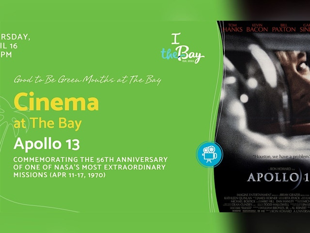 Celebrate Good to Be Green Months (March & April) at The Bay [https://www.thebaysarasota.org/wp-content/uploads/2023/08/2026-Good-to-Be-Green-Months-at-The-Bay-1.pdf] Commemorating the 56th anniversary of one of NASA’s most extraordinary missions (Apr 11-17, 1970) (PG) - NASA must devise a strategy to return Apollo 13 to Earth safely after the spacecraft undergoes massive internal damage putting the lives of the three astronauts on board in jeopardy. Come hungry and thirsty! The Nest Café [https://www.thebaysarasota.org/wp-content/uploads/2024/07/The-Nest-Cafe-2024-Summer-Brunch-Menu-as-of-7-7-24.pdf] will be serving delicious food, fresh popcorn and refreshing drinks. Bring your blankets, chairs, and friends to add even more comfort and fun. Cinema at The Bay is presented by The Desenberg Foundation.