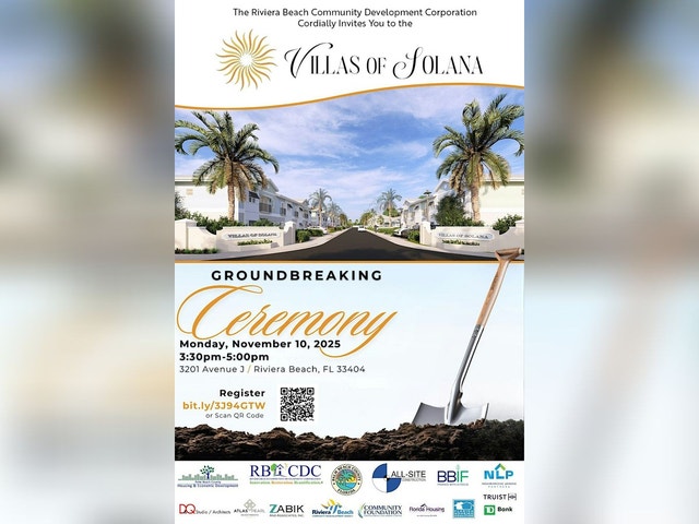 The Riviera Beach Community Development Corporation Cordially Invites You to the Villas of Solana Groundbreaking Ceremony.