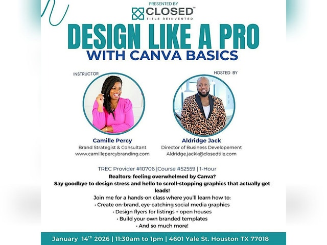 REALTORS, ARE YOU OVERWHELMED WITH CANVA? Then this class is for you! Get ready to learn how to create eye-catching graphics to market your brand. You’ll learn an introduction to Canva, basic tools, branding tools, social media design options, how to create flyers for listings and open houses, plus lots more! We’ll begin right at 11:30 AM, so please arrive by 11:15 AM to sign in for CE credit, grab lunch, get settled, and be ready for a great session!