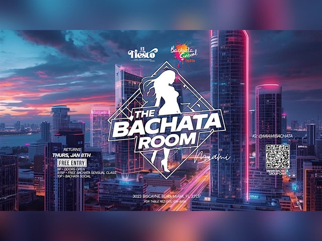 π THE BACHATA ROOM @ EL TIESTO MIAMI! πΊπ πΆ 100% Modern/Sensual β¨ The new Miami staple for every bachatero! π₯ FREE ENTRANCE β Everyone welcome! Come solo or with friends. No partner or experience needed! π 9:00 PM β Doors Open π€ 9:15 PM β FREE Bachata Sensual Class π 10:00 PM β 1:00 AM β Bachata Social Have a birthday? Celebrate with us!! 2x1 Margaritas!! Happy Hour until 8pm!! For Table Reservations [https://www.opentable.com/r/el-tiesto-cafe-miami] π² Stay connected with all our events: Join the Miami Bachata WhatsApp Community [https://chat.whatsapp.com/ImK46I5dCtt4GZuepabhyR?mode=hqrc]