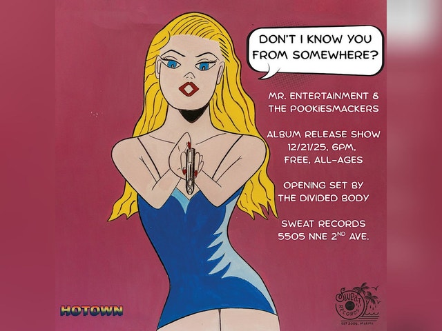 Join us at Sweat for Mr. Entertainment & The Pookiesmackers album release show! They’ve got a brand-new record Don't I Know You From Somewhere? on the way, with the second single dropping this Friday on Bandcamp. The full vinyl LP arrives December 21st and you’ll be able to pick it up at Sweat Records. Catch their live performance with support from The Divided Body! All ages, snacks and drinks available.
