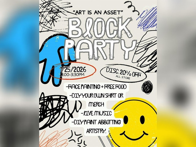 FREE📍 @artisanasset BLOCK PARTY 🗓 JAN 25TH | 1–3:30PM EVENT SCHEDULE: •Coffee & chill vibes ☕🎶 • Live performance 🎤🔥 • Open mic / community creatives 🎨🖌️ • DIY merch station (make your own tee or piece) 👕✂️ • DJ set + closing vibes 🕺🏾🎧 FREE Food, face painting, art, music, and community. Pull up, bring a friend, and tap in with the culture.