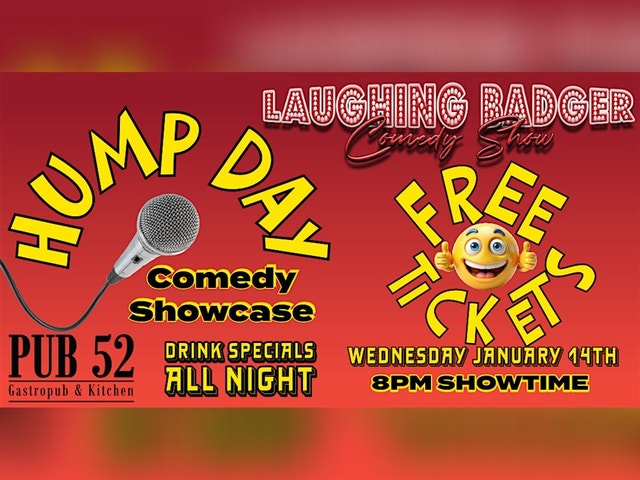 🍻FREE TICKETS HUMP DAY COMEDY SHOWCASE 🚫NO DRINK MINIMUMS🚫 🍹DRINK SPECIALS ALL NIGHT🍸 📅DATE: WEDNESDAY 1/14/2026 🕛SHOWTIME: 8PM GRAB YOUR FAMILY AND FRIENDS AND COME OUT TO PUB52 FOR A GREAT NIGHT OF COMEDY, FOOD, DRINKS AND FUN! 📌PUB 52 📍5829 SW 73RD ST., SOUTH MIAMI FL 33143 🎤HUMP DAY COMEDY SHOWCASE Laughing Badger has wowed audiences with over 500 side-splitting comedy shows across Florida, lighting up legendary venues like the Miami Improv, Fort Lauderdale Improv, Off the Hook Comedy Club in Naples, and countless other top comedy hotspots. Our secret? We deliver high-energy, crowd-pleasing performances packed with laughs—all at wallet-friendly prices. When you come to a Laughing Badger show, you can count on a polished, professional production and nonstop laughter from start to finish. Get ready to laugh out loud—stand-up comedy is back and better than ever at Pub52! We’re bringing together the hottest local and national comedians for a series of electrifying shows, guaranteed to leave you in stitches. Gather your friends, grab your tickets, and experience the thrill of live comedy in an intimate South Miami setting. Enjoy delicious food, great drinks, and a night full of side-splitting entertainment you’ll be talking about long after the show ends. Don’t miss your chance to catch the biggest laughs in town—seating is limited, so reserve your spot today! Terms & Conditions: Must be 21+ and frist come, first serve