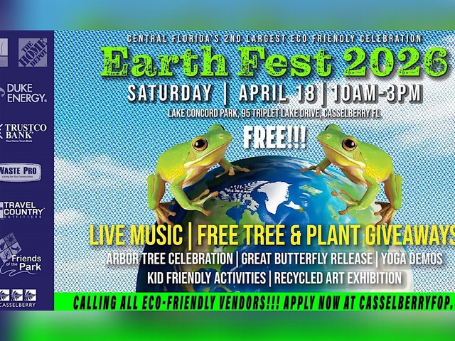 The 16th annual Earth Fest – the county’s largest environmentally friendly festival – is on Saturday, April 18, 10 a.m. to 3 p.m. at Lake Concord Park in Casselberry. The day begins with EarthFest with free tree and plant giveaways, butterfly releases and gardening workshops hosted by the City of Casselberry and Casselberry’s Friends of the Park. The mission of the day is to bring awareness about protecting our environment, creating clean energy and reducing our carbon footprint. As part of this important mission, numerous fun activities will expand your mind through eco-friendly sights and sounds. The areas that will educate, encourage and empower citizens to create a sustainable community include the Green Vendor Area, Entertainment Area, Food area and a Kids Zone. The event also celebrates Arbor Day, which is the last Friday in April each year. The Arbor Day Foundation has planted more than 350 million trees in neighborhoods, communities, cities and forests throughout the world. Besides more than 75 product vendors, the Casselberry Art House will host its Recycled Art Show, sponsored by the Rotary Club of Casselberry, and there will be artists throughout the park showing off their work. Admission to Earth Fest 2026 is free, and the event is open to the public. For more information, contact Event Chair Anthony Aramendia at 407-695-6069 or casselberryparks@gmail.com or visit the website at www.casselberry.org/earthfest.