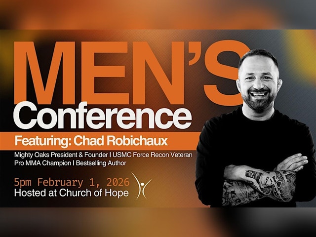 Men, join us for the 2026 Church of Hope Men's Conference, featuring Chad Robichaux, Mighty Oaks President & Founder, USMC Force Recon Veteran, Pro MMA Champion, and Beststelling Author. 5:00pm Dinner *Your ticket reserves your dinner for the Conference.