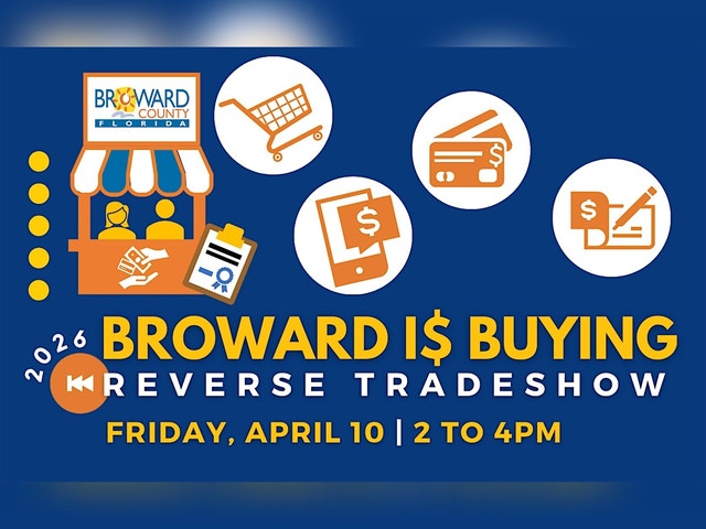 BROWARD I$ BUYING! REVERSE TRADESHOW Make connections that count to your business! As an attendee, you will network with Broward County Certified Agency Buyers (CABs) and learn what their agencies buy and how to sell directly to them. Be prepared to provide details on your business and to discuss your good or services. This is your chance to tap into the MILLION$ Broward County agencies buy every year. EVENT DETAILS: Broward County Certified Agency Buyers (CABs) will be available at their exhibit tables to connect with attending business owners and entrepreneurs. Attendees will not be provided with an exhibit table. We encourage attendees to bring your business cards, capability statements, and other materials to promote your products and/or services. Free parking is available on-site. Get directions and learn more about the venue. [https://www.broward.org/library/Pages/BranchDetails.aspx?branchInfo=34] This is a service of the Broward County Board of County Commissioners.