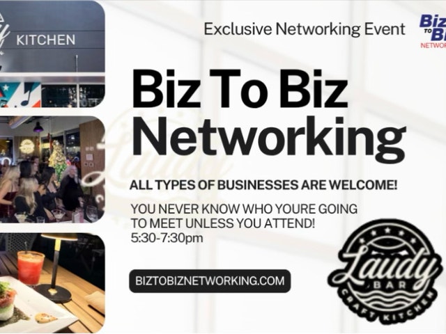 Biz To Biz Networking at Laudy Bar & Craft Kitchen Monday, April 13th Join us for BRAND NEW Business Connections with all different Business Professionals! Everyone is welcome to attend Monday, April 13th 5:30pm – 7:30pm Laudy Bar & Craft Kitchen 433 NW. 1st Ave. Downtown Fort Lauderdale Free Parking available $10 p.p. at the event includes Delicious Appetizers and Discounted Drinks! View All of Biz To Biz Networking Events: www.biztobiznetworking.com DRESS CODE: BUSINESS CASUAL! If you are looking to expand your business connections… the Biz To Biz Networking event gives you that opportunity to grow your connections… always in a fun setting. Everyone is Welcome to Attend..from small to large companies You Never Know Who You Will Meet… Unless you attend! Everyone is always welcome to attend. From large to small businesses this is your opportunity to network with other professionals and grow your business connections Become a Sponsor of this Event $150 includes a small display table www.biztobiznetworking.com Bring A Friend and Introduce Them To Biz To Biz Networking. You Won’t Want To Miss This Networking Event! Are you wondering if attending a networking event in really worth your time and effort? The answer is a resounding YES. Biz To Biz Networking events are the perfect opportunity to make valuable new connections and grow your business. By attending our events, you can meet like minded professionals from all types of companies. Not only that, but Biz To Biz Networking events are FUN too! So don’t miss out on the incredible opportunity to connect! See for yourself what all the buzz is about…weekly networking events throughout South Florida, Business Expos,over 125 networking events each year! BECOME A BIZ TO BIZ VIP MEMBER $350 for One Full Year – 8-10 Events each month View All of Biz To Biz Networking Events: www.biztobiznetworking.com