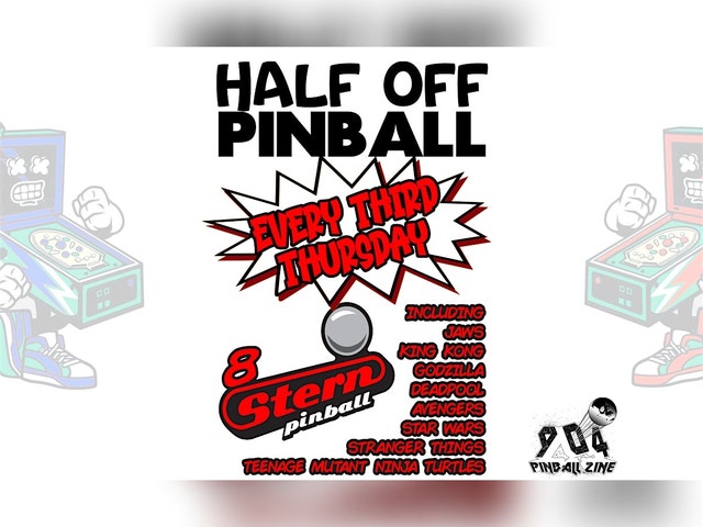 Join us for 1/2 off Pinball on 8 different games every third Thursday! Rack up some high scores and become the pinball wizard of Duuuval