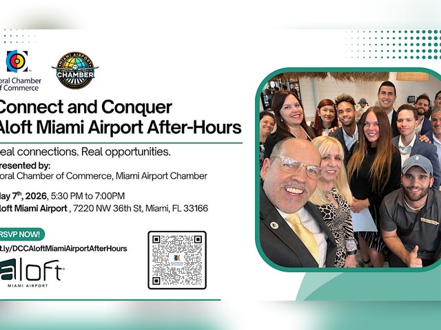 Connect & Conquer: After-Hours Business Networking at Aloft Miami Airport. Presented by: Doral Chamber of Commerce, Miami Airport Chamber May 7th, 2026 | 5:30 PM – 7:00 PM Aloft Miami Airport 7220 NW 36th St, Miami, FL 33166 Get ready to Connect & Conquer at this dynamic After-Hours Business Networking Event! Join us for an evening of powerful connections, meaningful conversations, and new opportunities to grow your business in a relaxed and vibrant atmosphere. Enjoy complimentary appetizers, refreshing drinks, and the opportunity to connect with business professionals, entrepreneurs, and community leaders from across South Florida. Admission: FREE with RSVP Spots are limited — reserve yours today and expand your professional network where opportunity meets success! Let’s keep the momentum going by connecting, collaborating, and growing together. Don’t miss out — space is limited! [https://www.doralchamber.org/after-hours-at-aloft-miami-airport/]Secure your spot and expand your business horizon where opportunities and success meet. 👉 https://www.doralchamber.org/after-hours-at-aloft-miami-airport/RSVP Now! [https://www.doralchamber.org/after-hours-at-aloft-miami-airport/] #business #networking #success #ConnectAndConquer #NetworkingEvent #MiamiBusiness #DoralChamber #MiamiAirportChamber #BusinessNetworking #MiamiEvents #AfterHours #AloftMiamiAirport @cityofdoral