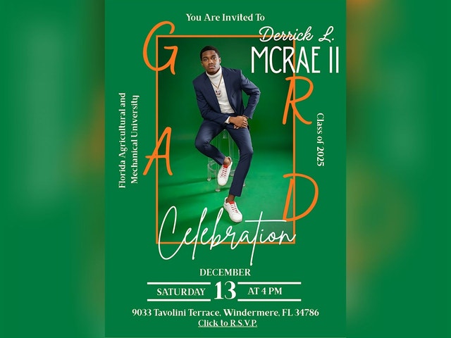 DERRICK L. MCRAE II GRADUATION CELEBRATION Join us as we celebrate our son’s big achievement of graduating from The Florida Agricultural and Mechanical University. We are excited and can’t wait to share this special day with you! Thank you!