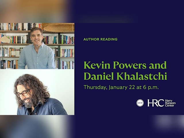 Join us for an evening with authors Kevin Powers and Daniel Khalastchi as they read selections of their work. A reception will follow the program. This event is co-sponsored with the Michener Center for Writers. Kevin Powers was born and raised in Richmond, Virginia. Since publishing his first novel in 2012, his books have been translated into more than a dozen languages. He has been a finalist for the National Book Award and a recipient of the PEN/Hemingway Award, the Guardian First Book Award, the Prix littéraire du Monde prix étranger, and the Grand Prix de Littérature Américaine, among other recognitions. He was a James A. Michener Fellow in Poetry at the University of Texas at Austin from 2009-2012 and later held a Guggenheim Fellowship in Fiction. A U.S. Army veteran of the war in Iraq, Kevin now lives on Florida’s First Coast with his family. Daniel Khalastchi is a graduate of the Iowa Writers' Workshop and the author of four acclaimed books of poetry. His most recent collection, The Story of Your Obstinate Survival, received the National Jewish Book Award for Poetry and was longlisted for the PEN/Volecker Award for Poetry. He lives in Iowa City where he is the executive director of the University of Iowa’s Office of Writing and Communication. He is the cofounder and managing editor of Rescue Press.