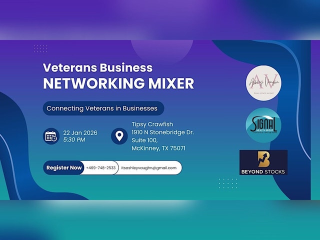 VETERANS BUSINESS MIXER – BUILDING STRONGER CONNECTIONS, ONE MEET-UP AT A TIME Join us for the second gathering of the Veterans Business Networking Mixer, an event created to bring veteran entrepreneurs and local business owners together for meaningful connection, collaboration, and growth. Our first mixer started small but powerful, hosted in a model home where a handful of us came together, shared stories, and built relationships that have already proven valuable. We’re excited to continue expanding this community, especially on the north side of DFW, where veteran-focused business networks are limited but deeply needed. Whether you're a seasoned business owner or just getting started, this mixer is a relaxed, supportive space to: * Connect with other veteran-owned and veteran-friendly businesses * Exchange ideas and best practices * Discover new ways to grow, market, and collaborate * Form reliable referral partnerships * Share what’s working in your business, and learn from what’s working in others As a veteran business owner, I understand the importance of having trusted, high-quality business partners to refer clients to, and I know many of you feel the same. This event is an opportunity to build that network together. Bring your passion, your experience, your business cards, and let’s continue building a strong, connected, and supportive veteran business community in North DFW. We hope to see you there! This event is organized by: Signal Health Group Dallas: We are VA-approved and proudly serve veterans, seniors, and adults who want to remain safely at home. Signal Health Group of Dallas provides non-medical in-home care, including personal care, companion care, dementia and Alzheimer’s support, meal preparation, light and heavy housekeeping, transportation, and overnight attendant services. Beyond Stocks: Beyond Stocks is an education and media platform that helps accredited investors and business owners understand and confidently invest in alternative assets as limited partners. Through interviews with fund managers and family offices, simple breakdowns of complex deals, and practical tools, Beyond Stocks shows people how to build wealth beyond the public stock market. Ashley Vaughn - Epique Realty Proudly supporting military families PCSing to the Fort Worth area & veterans in the Northern DFW metroplex. From first-time homebuyers to seasoned moves, I specialize in helping veterans & service members navigate tight timelines, competitive markets, and complex negotiations with confidence.