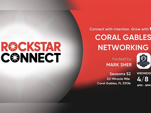 Your Community Starts Here in Coral Gables! What if building your network was as easy as sharing a laugh and a story? This isn’t your typical rigid networking — Coral Gables Networking powered by Rockstar Connect is where authentic relationships take root. More than an event, it’s a chance to be part of something bigger, meet genuine people, and discover shared passions. Join Mark Sher for an evening of meaningful connection on Wednesday, April 8, 2026, from 6 PM to 8 PM at Seasons 52 [https://www.facebook.com/Seasons52CoralGables/]. Whether you’re an entrepreneur, professional, or neighbor looking to get more involved, you’ll feel right at home from the moment you arrive. Everyone is welcome. Come as you are. Leave with new friendships and a stronger sense of belonging. Join our Facebook Group: Coral Gables Networking powered by Rockstar Connect [https://www.facebook.com/groups/1530498090397196/] Visit our landing page: https://rockstarconnect.com/coral-gables/ [https://rockstarconnect.com/coral-gables/] Mark Sher http://www.safeharbourfinancialgroup.net/ [http://www.safeharbourfinancialgroup.net/] Rockstar Connect https://www.rockstarconnect.com/ [https://www.rockstarconnect.com/] Power up your networking with YEEGO! We're taking the incredible atmosphere of Rockstar Connect and amplifying its power. Now, the energy you feel in the room is matched by the intelligence in your hand, ensuring every spontaneous chat has the potential to become a strategic partnership... Make it happen, install the app now! - https://yeego.app/pods/bspsdi66xjx83k0 [https://yeego.app/pods/bspsdi66xjx83k0] All attendees are welcome, either living in or visiting the South Florida area, Miami-Dade County, FL Broward County, FL, Palm Beach, FL, Monroe Country, FL, Greater Miami, Florida area: South Miami, FL, Coral Terrace, FL, Glenvar Heights, FL, Kendall, FL, Westchester, FL, Pinecrest, FL, Sunset, FL, Olympia Heights, FL, University Park, FL, Key Biscayne, FL, Miami Springs, FL, Sweetwater, FL, Cutler, FL, Gladeview, FL, Coconut Grove, FL, Sunrise Harbor, FL, Gables Estates, FL, South Bay Estates, FL, Ocean View Heights, FL, Ludlam, FL, The Pines, FL, Silver Bluff Estates, FL, Coral Terrace, FL, Bay Heights, FL #events #networking #businessnetworking #connection #smallbusiness #entrepreneurship #business #meetup #opportunities #coralgables #florida #rockstarconnect