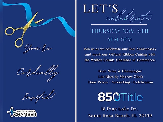 Join us as we celebrate our 2nd Anniversary and mark our Official Ribbon Cutting with the Walton County Chamber of Commerce. Beer, Wine, & Champagne Lite Bites by Marrow Chefs Door Prizes • Networking • Celebration