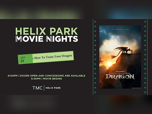 Soar into adventure in Helix Hall at the TMC3 Collaborative Building! Join us for an epic evening with How to Train Your Dragon, rated PG. Enjoy fresh popcorn, a selection of candies, and refreshing drinks on Friday, August 21, 2026. Please arrive 10-15 minutes early to settle in and grab your snacks before the adventure begins. 6:00 p.m. | Doors open and Concessions are Available 6:30 p.m. | How To Train Your Dragon Begins in Helix Hall Please park in the surface-level lot or TMC3 garages located at 1885 Old Spanish Trail, Houston, Texas 77030. Use code “TMC3” to validate 2 hours of parking. View the full FAQ here [https://www.helixpark.com/contact/#faq]. Picnic blankets will be available for $15 donation. * *All proceeds will benefit Texas Medical Center Foundation