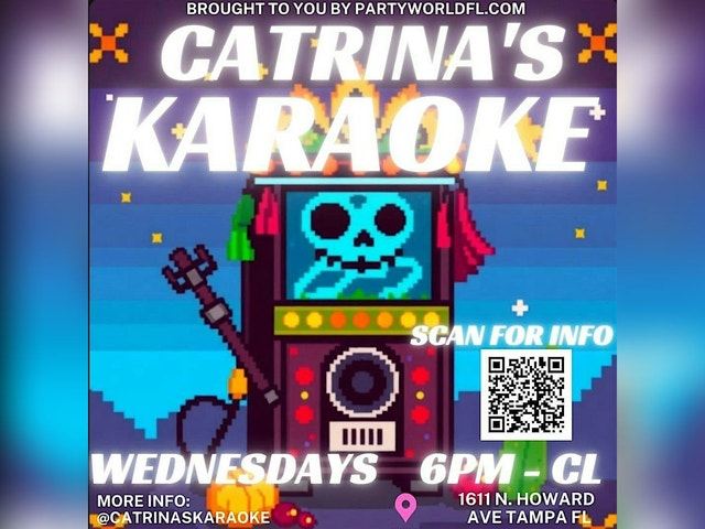CATRINA’S KARAOKE Who:: Karaoke Lovers in the LGBTQ community What:: A weekly karaoke event When:: Every Wednesday 6:00PM(ET)-9:00PM(ET) Where:: 1611 N Howard Ave Tampa Fl 33607 How:: FREE ENTRY & FREE PARKING Each participant must download “Sing by Stingray” to sing karaoke. Step 1 - Download “Sing by Stingray” Step 2 - Choose Your Song Step 3 - Grab the mic & start singing Step 4 - Drink a little and repeat process. Maybe this is Step 1. TIMELINE 6:00pm-7:00pm :: Cocktail Hour 7:00pm-8:00pm :: Music & MESSAGE FROM SPONSORS 8:00pm-9:00pm :: Music & Last Call