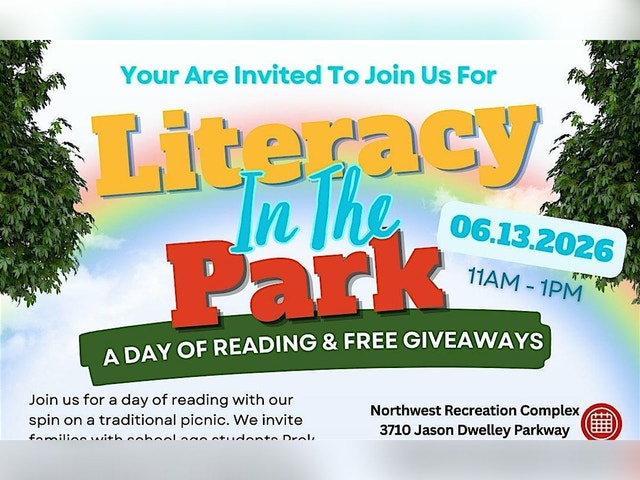 LITERACY IN THE PARK Join us for a fun and engaging in-person event all about boosting your love for reading! Literacy In The Park is the perfect spot to hang out, enjoy some fresh air, and dive into great stories. This event is for students Prek-5th grade. Whether your student is a bookworm or just starting out, there's something here for everyone. Don’t miss out on activities, meet fellow readers, free Reading fluency assessments, and celebrate the joy of books together!