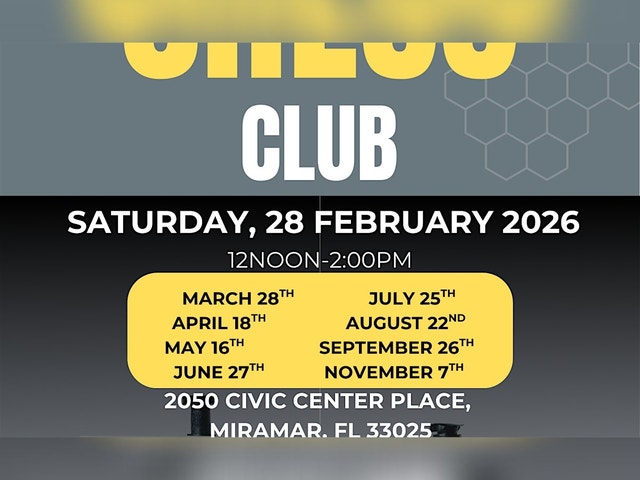 Join the Chess Club at Miramar Library for a chance to learn more about chess, practice your skills, and battle it out in a casual match against other players. We welcome all ages and all levels of experience. Meetings will take place on the 4th Saturday of each month. Teen volunteers are welcome to attend and earn service hours. Hope to see you there!