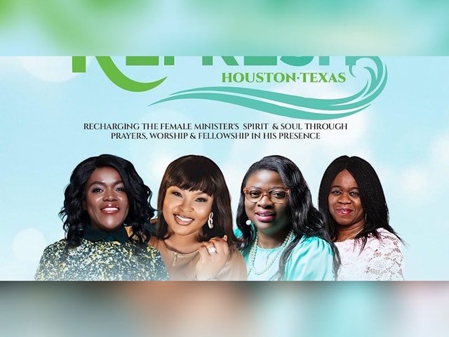 DEAR, FEMALE MINISTER, "REFRESH" HOUSTON IS FOR YOU! "I'll refresh tired bodies, I'll restore tired souls" - Jeremiah 31:25 (MSG) Here is the Word that God gave us for this initiative, and we are trusting him to bring it to fruition. So, if you are a Pastor's wife, a Female Pastor, a Music Minister, a Prayer Minister, or otherwise? Actually, if you serve in Ministry in any capacity, I would like to invite you to this time in God's presence, curated for us to minister to the Lord as his daughters and for him to minister to us, too. Are you burnt out on religion and feel burdened or tired? Do you sometimes feel unseen yet still serving? Come into his presence and let him refresh you. Looking forward to seeing you there. If you have a friend you think should be there too, why not bring them with you? At "REFRESH", you can expect an extended time of Worship, Prayers with each other and for each other, fellowship with each other, and an unleashing of the power and presence of God