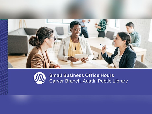 Are you the owner of a certified firm, a small business owner, or resident interested in starting a small business? Join us at City of Austin Small Business Office Hours to connect with resources, programs, and services. Participating departments include Economic Development, Financial Services, Austin Public Library, Austin Energy, and Small and Minority Business Resources. Staff will be on hand to answer questions and make referrals to available programs and services offered by City departments and local business support organizations. No appointments necessary - just show up!
