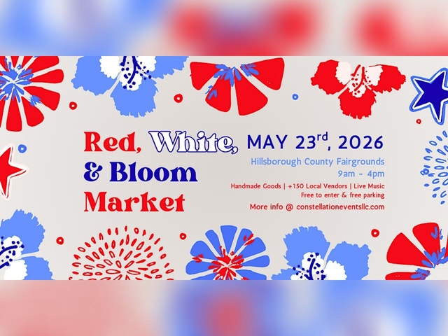 Welcome to the Red, White, & Bloom Market at the Greater Hillsborough County Fair! Join us on May 23, 2026 at 9:00 AM for a day filled with local vendors, delicious food, and live music. Get ready to shop for unique crafts, indulge in tasty treats, and enjoy the vibrant atmosphere with friends and family. Don't miss out on this exciting event right in the heart of the community. See you there! Timezone: Eastern Time (ET)