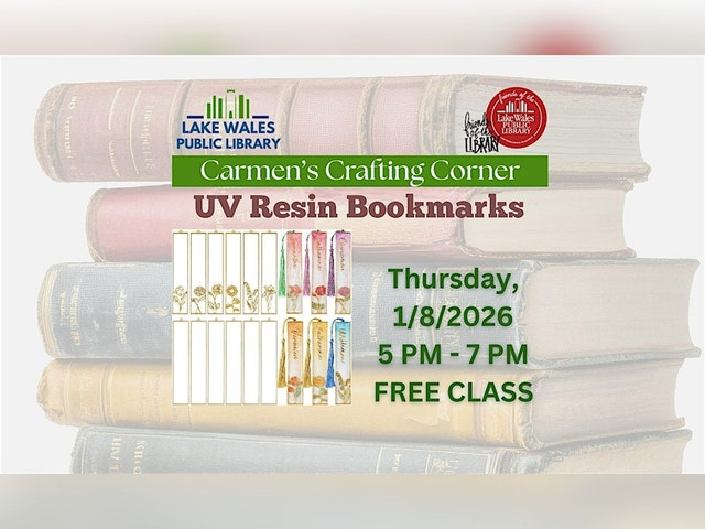 UV RESIN BOOKMARKS Join us in person for a fun and creative session at Carmen's Crafting Corner! We'll be making super cool UV resin bookmarks that you can customize and take home. Perfect for crafting lovers who want to add a personal touch to their reading time. Bring your creativity and let's get crafty together!
