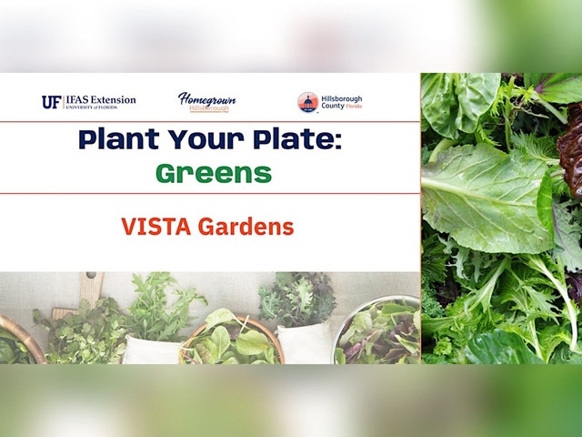 Welcome to Plant Your Plate: Greens @ VISTA Gardens! Join us at the garden at 13572 S Village Dr Tampa, FL 33618 for an in-person demonstration that will give you the opportunity to get your hands dirty and connect with fellow gardening enthusiasts. Whether you're a seasoned gardener or just starting out, this event is perfect for anyone looking to add some green to their plate. Don't miss out on this chance to grow your own greens and enjoy the fresh flavors straight from your garden! Plan to attend every Thursday from 9am - 10am to learn the following: * Thursday, January 8th - Week 1: Microirrigation * Thursday, January 15th - Week 2: Planting * Thursday, January 22nd - Week 3: Fertilizing * Thursday, January 29th - Week 4: Pruning * Thursday, February 5th - Week 5: Pest Management * Thursday, February 12th - Week 6: Harvesting and Seed Saving Note: You must register for each workshop separately! You can find the other workshops here. [https://www.eventbrite.com/cc/plant-your-plate-4587733] New to gardening and growing your own food? Plant to attend the "Triple Workshops" to learn how to lay micro-irrigation, set up a rain water harvest system, and implement backyard composting. More info here [https://www.eventbrite.com/o/ufifas-hillsborough-extension-8606873308].