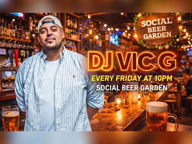 Welcome to Social Fridays: DJ Vic G Live! happening at Social Beer Garden HTX every Friday at 10:00 PM. Get ready to groove to the beats and enjoy a night of great music and good vibes. Join us for a memorable evening filled with beats, energy, and vibes. Don't miss out on this epic event! See you there!