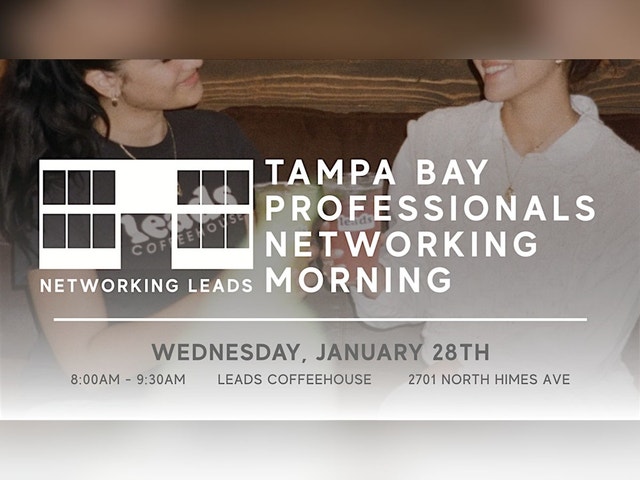 Start your morning with purpose at our Tampa Bay Professionals Networking Morning, a curated networking experience hosted by Networking Leads. Join us on Wednesday, January 28th from 8:00 AM to 9:30 AM at Leads Coffeehouse for coffee, light bites, and meaningful conversations with professionals across industries. Whether you're in business, marketing, design, or just looking to grow your network in Tampa Bay, this is your space to connect before the workday begins. What to Expect:• A welcoming, cozy atmosphere at Leads Coffeehouse• Quality networking with professionals from across Tampa Bay• Coffee and food available for purchase