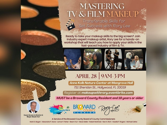 NOTE: REGISTRANTS MUST BE A BROWARD COUNTY RESIDENT AND 18+ OR OLDER. SEATS ARE LIMITED! The Broward County Film Commission is offering a workshop opportunity for Makeup Artists who want to expand their reach into the film and TV industry and learn about how they can apply their skills working on-set. Attendees will learn from industry expert Makeup Artist, Rory Lee who's work can be seen on TV & film, commercials, fashion & entertainment, music videos, sports and print. Workshop Overview - Mastering TV & Film Makeup: Transferable Skills for Set Success * Equip makeup artists with the essential skills and knowledge to work on TV and Film sets. * Understand industry protocols, etiquette, and professionalism. * Learn about essential products, application techniques, and kit must-haves. * Gain insights on NDA's, contracts, deal memos, and career-building strategies. * Experience hands-on demonstration of on-camera makeup techniques. NOTE: REGISTRANTS MUST BE A BROWARD COUNTY RESIDENT AND 18+ OR OLDER. SEATS ARE LIMITED! More about Rory Lee: Rory Lee is CEO and Lead makeup artist of MakeupByRory, Inc., a company of global freelance hair, makeup, and wardrobe stylists. She is a licensed esthetician with a chemistry background and the founder of her namesake makeup line RoryLee ® . Rory is also the Founder of “Our Girls Enrichment Program”, a 501c3 non-profit initiative that provides workshops in makeup application and life's lessons, as a tool to enrich and empower young women. She is a multiple award winning leader, on the crews of Suncoast Emmy’s and Telly awards and one of the 50 Most Powerful & Influential Leaders in Business & Industry, among so much more!