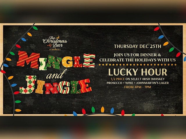 🎄 Mingle & Jingle at The Christmas Bar 🍻 Thursday, December 25th | 4:00 PM – 7:00 PM 📍 The Christmas Bar at JohnMartin’s Celebrate Christmas Day with great company, cozy holiday vibes, and unbeatable drink specials at our Mingle & Jingle! Join us for dinner and festive cheer at The Christmas Bar, where the holidays come alive with warm spirits and good times. ✨ Lucky Hour Specials (4 PM–7 PM): * ½ off select Irish whiskey * Prosecco * Wine * JohnMartin’s Lager Whether you’re stopping by before dinner or settling in for the evening, it’s the perfect way to toast the holidays with friends, family, and fellow Christmas enthusiasts. 🎶 Holiday atmosphere 🥂 holiday Cocktails 🎄 Christmas Day celebration Come sip, mingle, and jingle with us! - --- THIS IS NOT A DINING RESERVATION* For reservations please click here [https://johnmartinsmiami.com/reservations/] F or any questions please give us a call at (305)-209-0609 or email us at hello@johnmartinsmiami.com