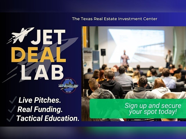 Presented by Jet Lending at the Texas Real Estate Center Jet Deal Lab is the ultimate monthly experience for real estate investors, flippers, and dealmakers ready to move beyond the noise and get real results. Each session is designed to elevate your deal-making IQ, strengthen your network, and showcase live investment opportunities — all in one high-impact room. Tactical real estate education from real-world investors Monthly focus on critical investing strategies (ARV, rehab pricing, DSCR, and more) Live deal pitches — with feedback, funding insights, and real buyer interest Hosted by Jet Lending, the trusted name in Texas investor funding WHEN: First Friday of Every Month | 10:00 AM – 12:30 PM WHERE: Texas Real Estate Center – 5295 Hollister Rd. Houston, TX 77040 WHO SHOULD ATTEND: Active investors, new investors, lenders, contractors, agents & wholesalers Bring your deals. Pitch them live. Get them funded. We reserve time every month for attendees to present active deals to the room — buyers, lenders, and partners are waiting. Each month focuses on a new investing topic to sharpen your edge and accelerate your returns. Next Topic: Using Jet’s FREE Deal Analyzer to Make Offers That Get Accepted, Funded and Closed