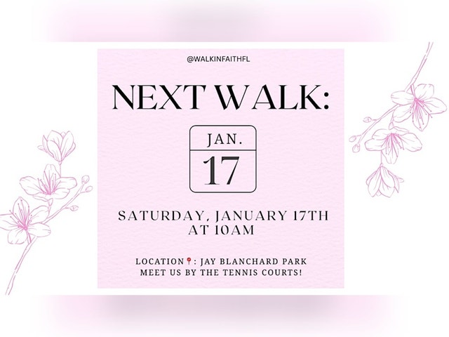 A ladies' walking group meeting at Blanchard Park to walk together in faith Ladies, join us! Blanchard park at 10am January 17th 2026. Let’s walk together in faith! Meet in front of the tennis courts. See you there!