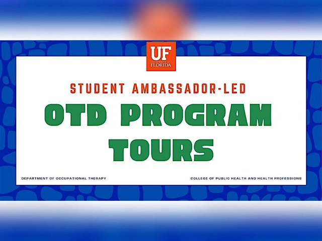 Join an in-person tour of the University of Florida's Department of Occupational Therapy, led by current student leaders, OTD Ambassadors. Ask questions, check out our facilities, and learn about the entry-level Occupational Therapy Doctorate program’s application and admission process. OTD Ambassadors will share their experiences and build your excitement for all things occupational therapy! Family and friends are welcome to register and attend with you as well. Additional location information and parking details will shared upon registration. Contact Information Email: OTAdmissions@phhp.ufl.edu Phone: (352) 273-6817
