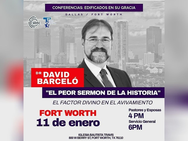 Attend a conference on sermon delivery with Dr. David Barceló Acompáñanos a la Conferencia "El Peor Sermón de la Historia" con el Dr. David Barceló. Pastor-Esposa y Líderes 4pm, Servicio General 6PM