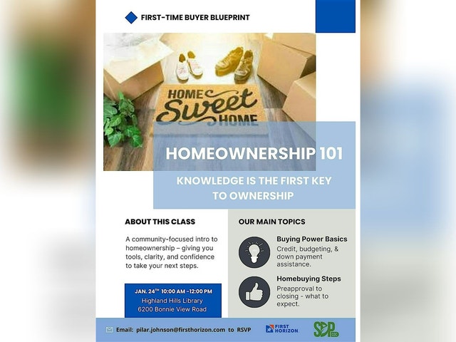 Buying a home doesn't have to feel overwhelming. Homeowneship 101: A First-Time Buyer Blueprint is an educational workshop designed to help first-time and future homebuyers understand the basics of the homebuying process -- from credit and budgeting to financing options and downpayment assistance programs. Led by an experienced mortgage professional, this session provides clear, practical guidance in a judgement free enviroment. Attendees will leave with a better understanding of what lenders look for, the steps to get preapproved, and how to position themselves for long-term homeownership success. Perfect for renters, first-time buyers, and anyone preparing to take the next step toward homeownership.