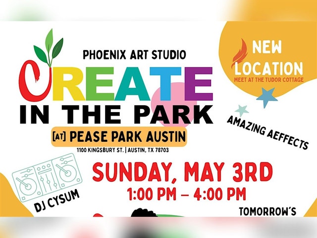Every first Sunday, local professional artists come together to create a space where creativity and movement are freely shared with the community—at no cost. This experience is open to the whole family. Paint pictures, make vision boards, design bracelets, move your body in playful ways, and enjoy face painting. Come explore the depths of your imagination and experience the joy, connection, and healing that creativity brings. In May we will be celebrating our new location back at the park. Pease Park at 1100 Kingsbury St., Austin, TX 78703. As soon as you enter the park, walk up the path to the Tudor Cottage on your left. For May, Join us at 2pm. for fun body movement with Coach Tyriek Taylor. Send a email to createintheparkatx@gmail.com for questions.