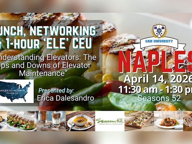 Join us for a complimentary lunch, networking, and a 1-hour 'ELE' CEU by Erica Dalesandro of Nouveau on "Understanding Elevators : The ups and downs of elevator maintenance." Get informed, network with great business partners, and enjoy a fantastic lunch! 11:30 am - 1:30 pm