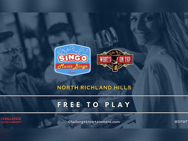 NORTH RICHLAND HILLS – NEW WEEKLY CE SHOW! #FREE Starting 1/14, your week just got louder and way more fun! #Singo - Music Bingo is coming to What's On Tap every WEDNESDAY at 7:30PM! It's bingo, but with playlists that make you sing along. Compete for prizes, sip your favorite drink, and vibe with the crowd. Free to play and full of feel-good moments. #DFWTrivia powered by ChallengeEntertainment.com [https://challengeentertainment.com/] #Free whatsontapnrh [https://facebook.com/413338645902498] #MusicBingo #SingoNight #BingoInNorthRichlandHills #WednesdayPlans #BetterNightOut #WhatToDoTonight #YourThirdSpace What's On Tap - 6020 Parker Boulevard, Suite 100, North Richland Hills, TX