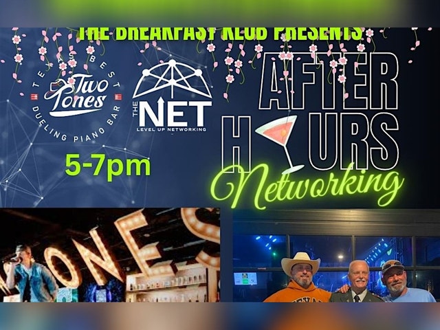 Join us for After Hours Networking, hosted by The Breakfast Klub, at Two Tones Dueling Piano Bar! This monthly meetup is designed to bring professionals together in a relaxed, high-energy setting where real connections happen. Enjoy great conversation, build meaningful relationships, and unwind after the workday while surrounded by local business owners, entrepreneurs, and community leaders. Whether you’re looking to grow your network, collaborate, or simply connect with like-minded professionals, this is the perfect way to level up—after hours. Location: Two Tones Dueling Piano Bar Time: 5:00–7:00 PM Hosted by: Brian Rodway with Color Concepts Come for the connections, stay for the atmosphere. We can’t wait to see you there!