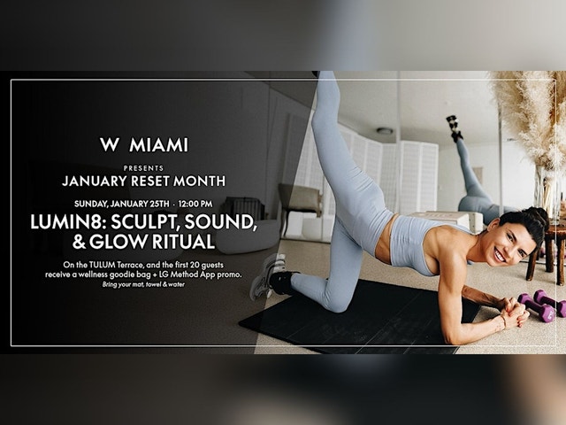 Glow, move, and reset with LUMIN8: A Sculpt, Sound & Glow Ritual on Sunday, January 25th at 1pm at W Brickell for a signature wellness experience created by renowned movement visionary Linda Gastaldello, founder of LG Method and LUMIN8. Rooted in mindful sculpt, pilates-inspired mobility, dance-infused movement, and breathwork, this immersive class is designed to energize the body, calm the nervous system, and awaken your inner glow. Guided by Linda’s signature, beat-driven flow, the experience transitions from grounding breath to powerful, low-impact sculpting movements, before closing with a restorative reset through sound healing and guided stillness. Expect a high-vibe atmosphere that leaves you feeling empowered and refreshed. Crush your workout, then keep the vibe going at TULUM, W Miami’s stunning rooftop bar and restaurant! Elevate your post-class experience with the Brickell Brunch Sessions menu-packed with bold flavors and available for purchase. Treat yourself, you’ve earned it! The first 20 guests to sign up will receive an exclusive goodie bag featuring a special wellness drink and exclusive promo code for the LG Method App, giving access to Linda’s signature workouts, meditations, and weekly programs from anywhere in the world. Don’t forget to bring your mat, towel and water bottle. Spots are limited—secure yours today and make your January Reset unforgettable! Follow @WMiami, @TULUMWMiami, @lindagastaldello and @lgmethod for more information.