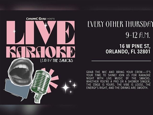 Looking for a fun karaoke night, live music event, or exciting things to do tonight? Step into a high-energy live band karaoke night where you take the spotlight and sing your favorite songs backed by The Smacks! This interactive karaoke event welcomes everyone—from seasoned performers to first-time singers and confident shower vocalists. With a relaxed, supportive crowd and an upbeat atmosphere, the stage is yours to enjoy without pressure. The vibe is loose, the energy is right, and the infused drinks are smooth, making this karaoke experience the perfect mix of music, fun, and connection. Ideal for friends’ night, date night, birthdays, or anyone looking for nightlife events that feel exciting and inclusive. All voices welcome. No judgment—just music, laughs, and unforgettable moments. What to Expect * Live Band Karaoke With The Smacks * Open Mic–style Singing With Real Musicians * High-energy Yet Welcoming Atmosphere * Infused Cocktails & Elevated Treats