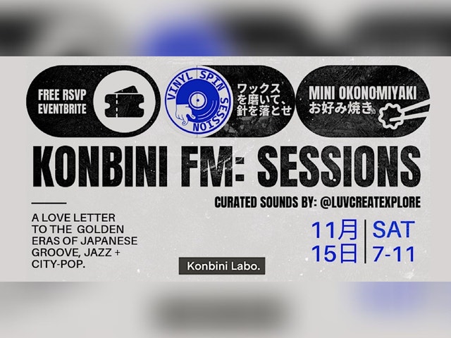 KONBINI LABO PRESENTS: KONBINI FM: SESSIONS — a Japanese Listening Lounge Experience 📅 Saturday, November 15th 🕖 7 – 11 PM 📍 41 E Duval St Wax down, needle ready. 💿✨ Live vinyl sets curated by LUVCREATEXPLORE spinning smooth Japanese grooves, funk & city pop all night. Think chill lounge energy — come sip, snack, and vibe. We’ll have small bites like mini okonomiyaki and other konbini-style surprises (you know how we do 👀). No fixed menu, just pure quality. It’s a free event — come and go as you please. Perfect before or after your dinner plans, or just to hang with the city’s coolest snack dealers. 🍶 Still your favorite “inconvenient convenience store”, just elevated for the evening. 🎟 RSVP FREE via Eventbrite 🇯🇵✨ レコードナイト @ コンビニラボ 11月15日(土)19時〜23時 ライブDJ + 美味しいスナック + チルな雰囲気。 入場無料・出入り自由・イベントブライトで予約してね。